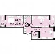 жилая 30: по комнатам - 15 и 15 кв.м., кухня - 11 кв.м.