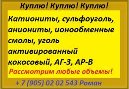Закупаем с хранения катиониты, аниониты, сульфоуголь, уголь активированный кокосовый, уголь активированный АГ-3, АР-В, ионообменные смолы. Купим неиспользованные материалы, остатки со складов, излишки, неликвиды. Самовывоз за наш счет. О цене договоримся. Оплата сразу на месте любым удобным для вас способом. Ждем ваших предложений.
